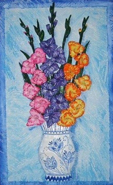 Через сутки очень аккуратно переверните их, они должны просохнуть и с другой стороны. Все, картина готова! Нужно лишь сделать бутоны, скрутив лепестки. Тычинки можно сделать из тонкой проволоки, и вставить сразу в еще сырой цветок.