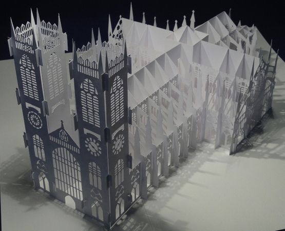 В технике киригами можно выполнять такие работы, как, например, ажурные открытки-раскладушки (на английском - pop-up), а так же всяческие объемные бумажные сооружения.