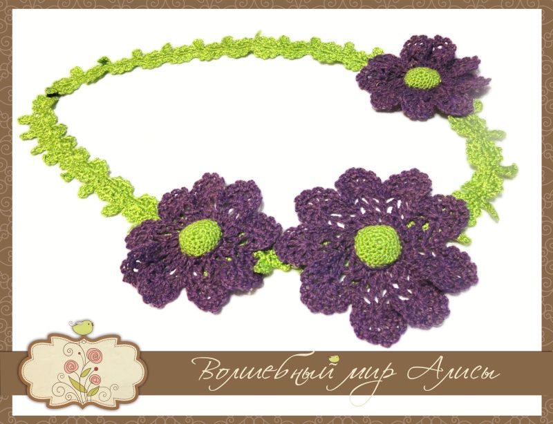 Основу колье вяжут на цепочке из 269-ти воздушных петель (33 раппорта по 8 петель + 5 петель для симметрии).
