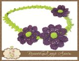 Свяжите 1 большой цветочек диаметром 5,5 см и 2 маленьких цветочка диаметром 4,5 см, а также 3 серединки цветочков в виде недовязанных шариков. Серединки цветов набейте синтепоном или остатками пряжи.
