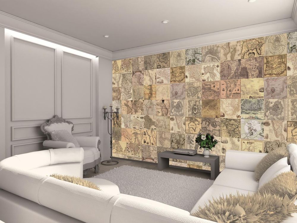 Идей тут множество. Первое, что приходит в голову - карты. Я обожаю старые географические карты. Сразу атмосфера становится авантюрной, в духе приключений Жюля Верна. Так что вперед на барахолку за старыми атласами, получиться должно так: