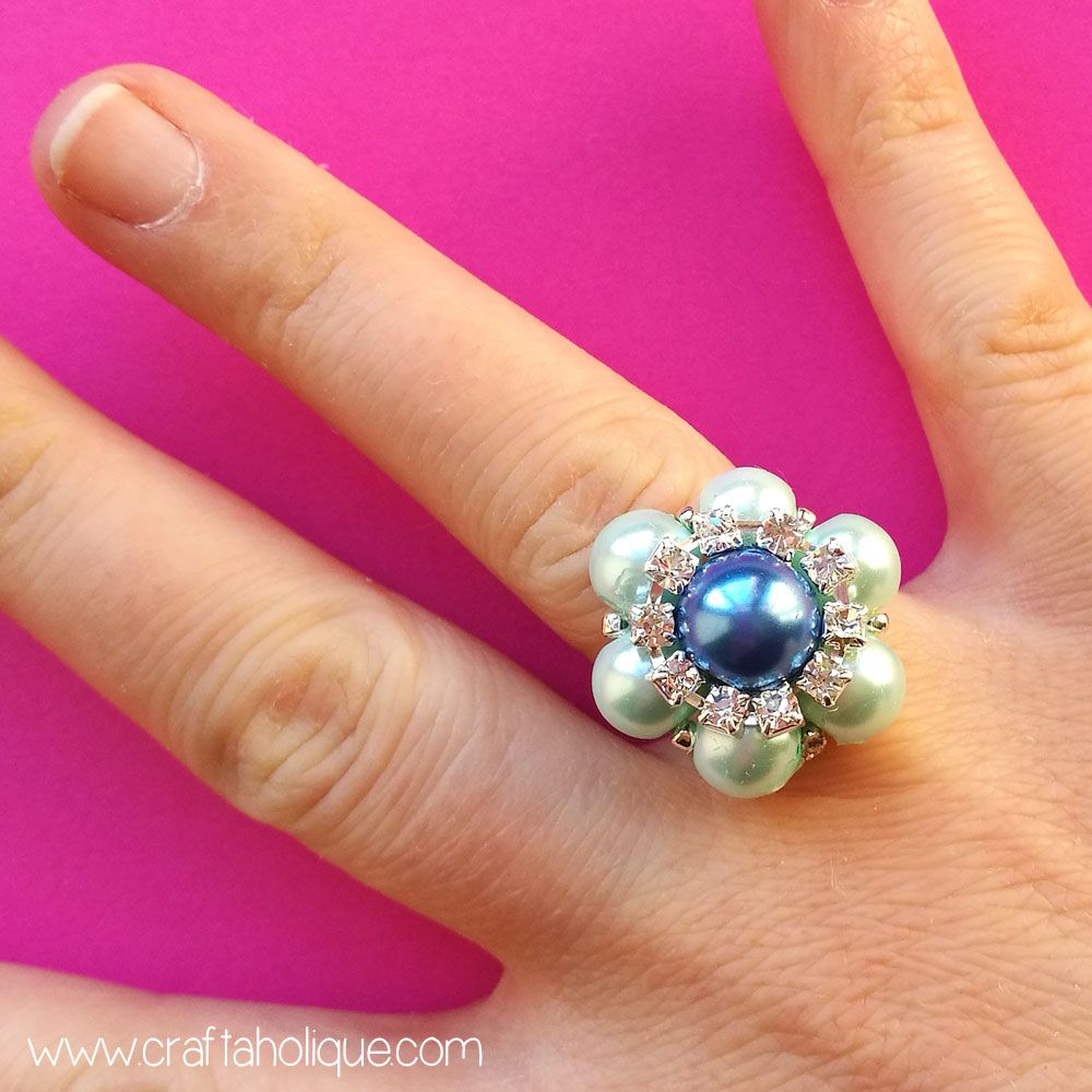 Просто добавьте клей на плоскую площадку основы для кольца, как показано на фото ниже! Я знаю, это слишком просто, не так ли? И все- таки готовое кольцо так красиво и эффектно!