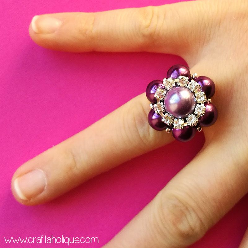 Сегодня в моде довольно крупные, эффектны кольца. Такое эксклюзивное украшение вы можете изготовить самостоятельно из стеклянных бусин, бисера и кристаллов.