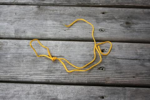 Нить сложите вдвое, на одном конце завяжите узел.