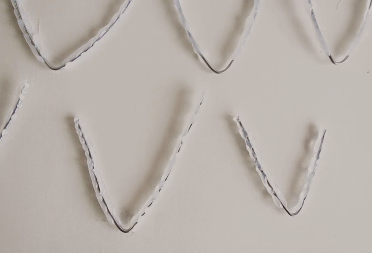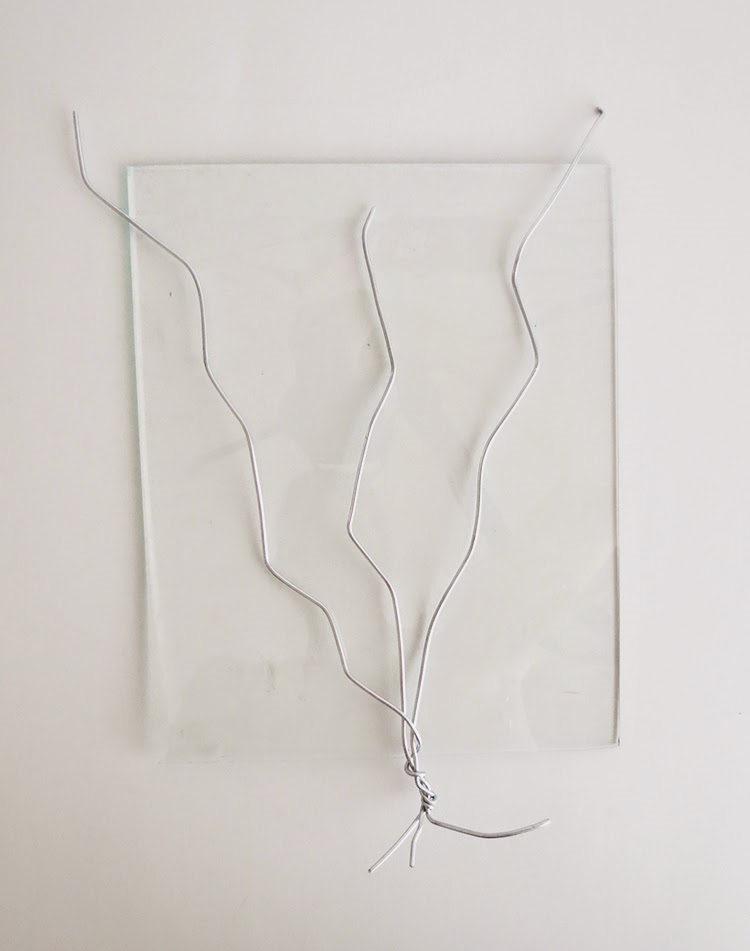 Слегка изогните проволоку, придавая элементам более естественную форму. Коль скоро вы добьетесь нужного результата, поместите заготовку на кусок стекла или другой поверхности, где клей не будет приклеиваться.