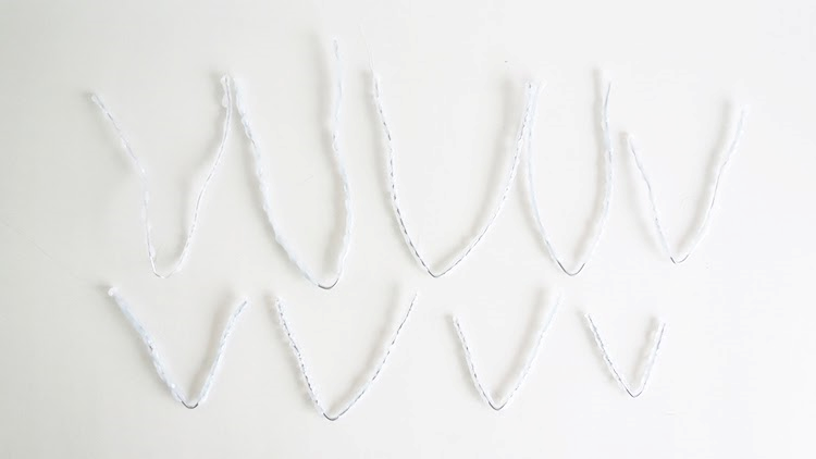 Вырезать около 9 кусков проволоки разного размера, приблизительно 10 см и 40 см согните вдвое. Некоторым элементам придайте слегка изогнутую форму.