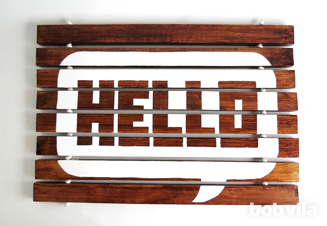 Встречайте гостей с приветствием "Hello!" прямо у двери, когда вы украсите свой вход этим простым и ярким, сделанным своими руками ковриком. Непременно первое что видят ваши гости, когда заходят в дом это коврик. Так почему же не сделать его оригинальным, веселым, с дружественным и радостным приветствием, а главное уникальным и своими руками? В этом сезоне, приветствовать гостей перед дверью будет половик. Немного дерева, веревок, краски и вы готовы пойти в путь!