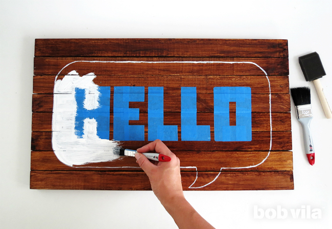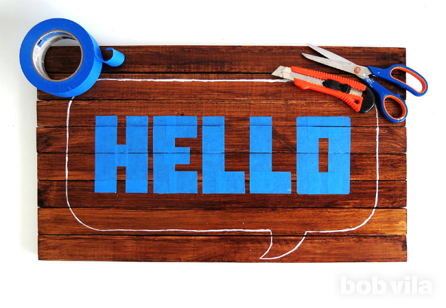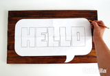 Теперь для приветствия напишите "HELLO" полосками малярной ленты. Старайтесь сделать ваши буквы одинакового размера; если вам сложно, вы можете использовать шаблон, чтобы вырезать каждую букву.
