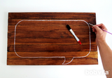 Совместите деревянные части вместе в горизонтальном направлении, не оставляя пространства между планками, и разместите в центре облако на вашем деревянном прямоугольнике. Обведите шаблон на деревянной поверхности при помощи карандаша.
