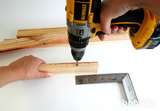 Вдоль тонкой стороны каждой планки, измерьте 8 см от каждого конца, отметьте его, и просверлите сквозное отверстие.
