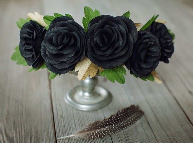 Благодаря моей любви к различным красивым веночкам, я нашла эту идею...И я думаю, что она потрясающая! Что, если Хэллоуин пришел слишком быстро, и страшного костюма у вас нет? Пусть ваш образ будет готичным! Кроме того, эти черные цветы довольно романтичны, так что у вас будет реальная возможность использовать этот ободок для другого экстравагантного образа.