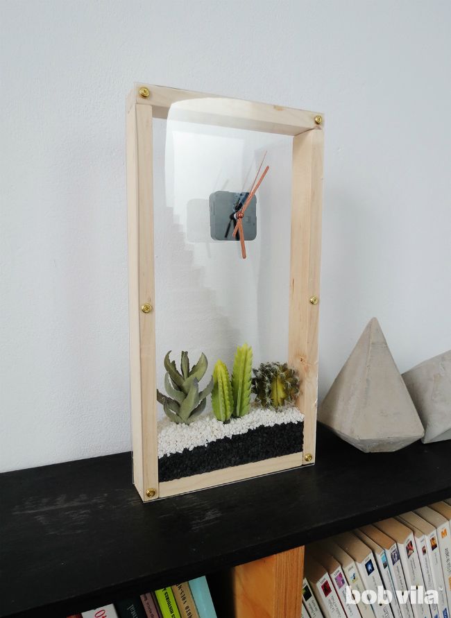 Часы в наше время утратили свою острую необходимость, они уже не являются обязательным предметом для каждого дома, чем в те времена, когда сотовые телефоны были огромных размеров и доступны не каждому из-за их стоимости. Но, все-таки, не смотря на высокие технологии к часам снова возрождается интерес. Поскольку, когда мы находимся дома, мобильный телефон не всегда с нами, поэтому часы на книжной полке будут как раз к месту. Поймите правильно, этот специфический современный акриловый дизайн совершенно ничего не имеет общего с тем что, вы видите на полках ваших бабушек. Вместо этого он объединяет в себе функциональность хронометра и с возможностью быть украшением дома, в нашем случае, искусственными суккулентами и кактусами! Если вам интересно, читайте дальше, как сделать часы достойные показа на вашей книжной полке.