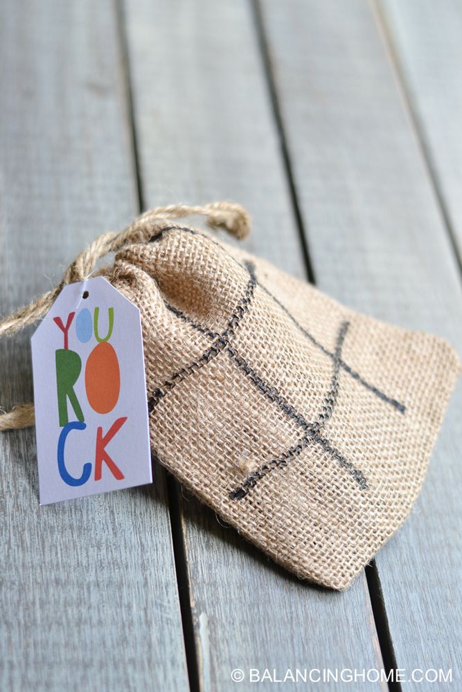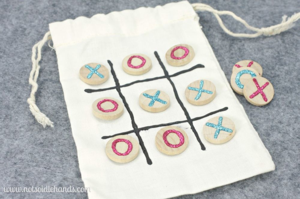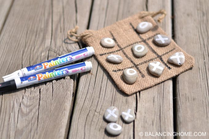 Нарисуйте доску (#) крестики-нолики на каждый хлопковый мешочек, используя краску или маркер для ткани.