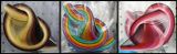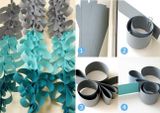 Готовые элементы можно комбинировать по своему усмотрению. Их можно наклеивать на основу, подбирая по форме, размеру или цвету, заполнять ими контур букв, цифр или силуэтов. Эффектно смотрятся композиции, состоящие из цветных завитков, образующих градиентный переход.