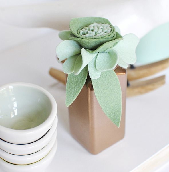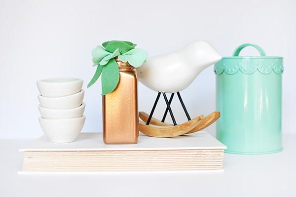 А чтобы придать нашему винтажному изделию своими руками больше натуральности, на банку-вазочку приклейте большие листоподобные заготовки из фетра, как на изображении.