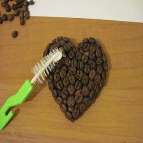 5. Используйте щетку, чтобы вычистить излишки клея на поверхности кофейных зерен.