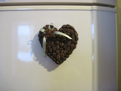 Большинство из нас любят пить кофе. Но вы можете не знать, что кофейные зерна могут быть использованы, чтобы сделать красивое и уникальное украшение для интерьера. Они также являются отличными дезодорантами для дома. Этот мастер класс о том, как сделать магнит в форме сердца из кофейных зерен. С другими натуральными ароматизаторами, такими как, звездочки аниса или палочками корицы, этот милый маленький в форме сердца магнит послужит не только как привлекательный декор для холодильника, но также поможет создать свежий аромат на вашей кухне. Для тех, кто любит кофе - это сердечко может послужить хорошим маленьким подарком.