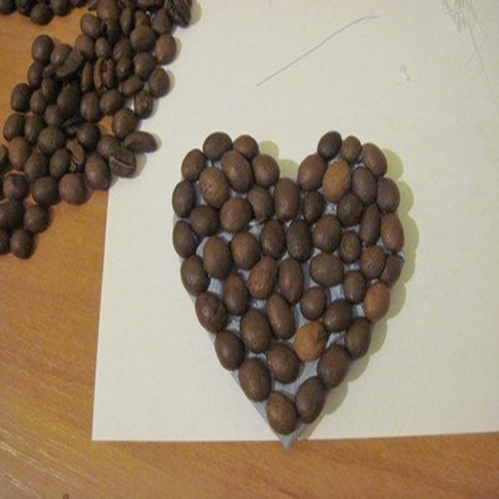 4. Далее приклейте кофейные зерна по всей поверхности сердца. Старайтесь не допускать пробелов. Подождите, пока клей полностью высохнет.