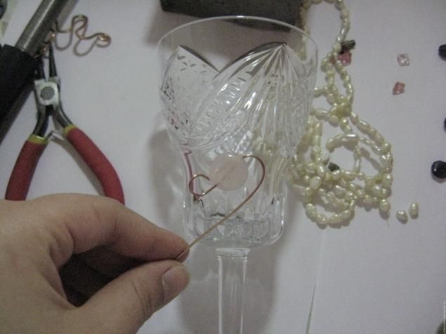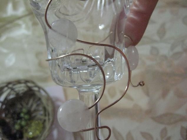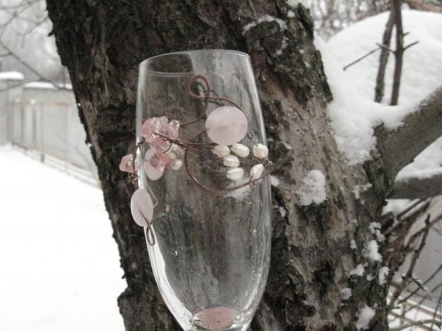 На "Медную" свадьбу друзей я сделала вот такие бокалы из меди и натуральных камней, речного жемчуга.