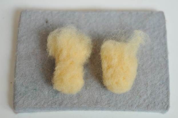 Очень важно запомнить, что при создании симметричных деталей (рук, ног, глаз, ушей, рогов и т.п.), равное количество шерсти надо заготавливать одновременно! Если полностью свалять одну руку, а только потом пытаться на глаз отменить нужное количество материала для второй, шансы получить две идентичные конечности невелики. В идеале, валять обе руки надо параллельно, постоянно поворачивая и сравнивая между собой детали.