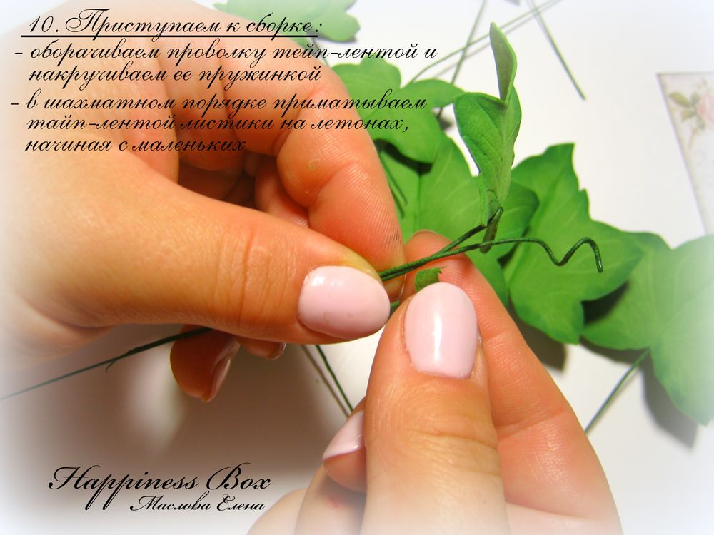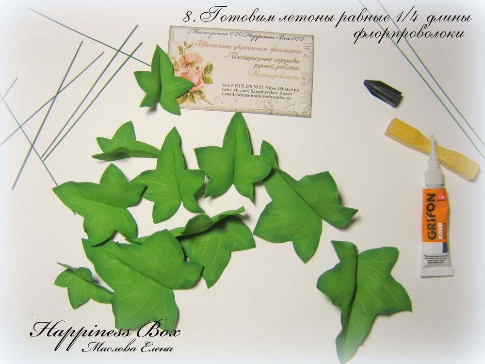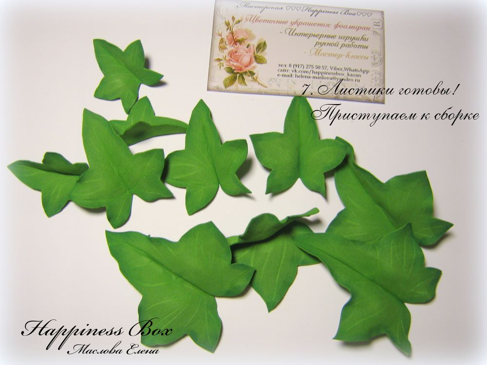 Хочу начать наше знакомство с небольшого мастер класса по созданию веточки плюща обыкновенного(Хедера) из фоамирана