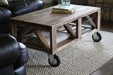 Уберите все брусья, кроме нижнего ряда, состоящего из 5 брусьев длиной 1300 мм. Эти дощечки сформируют поверхность столешницы, поэтому на нижний ряд лучше всего укладывать самые красивые брусья.