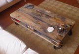 Вот и все — столик готов. В финале он получается довольно тяжелым и устойчивым. Использовать его как прикроватный столик для ноутбука будет неудобно, но зато ваши домашние любимцы не смогут опрокинуть его со всем содержимым. Выглядит такой столик презентабельно и стильно.
