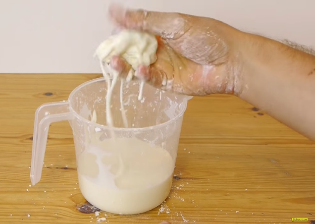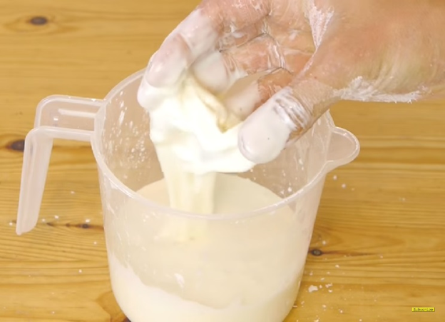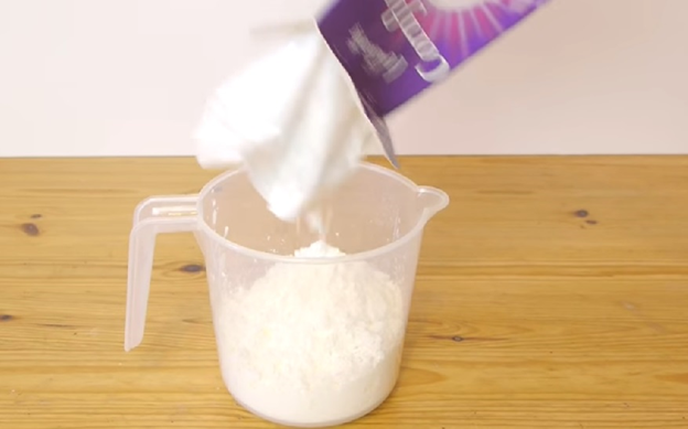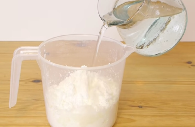 1. Насыпьте крахмал в мерный стакан или другую емкость.