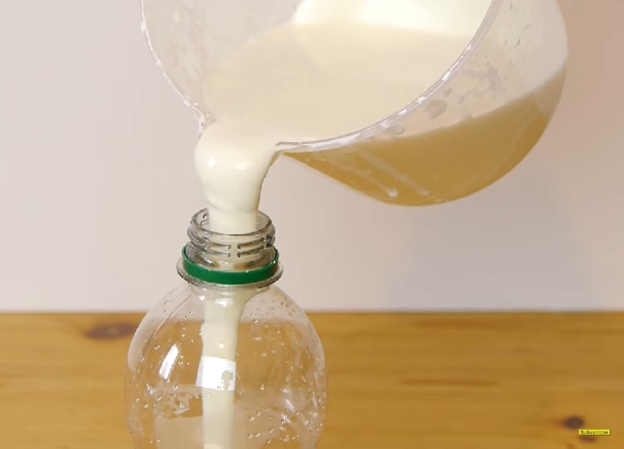 2. Налейте слизь в пустую пластиковую бутылку, используя воронку.