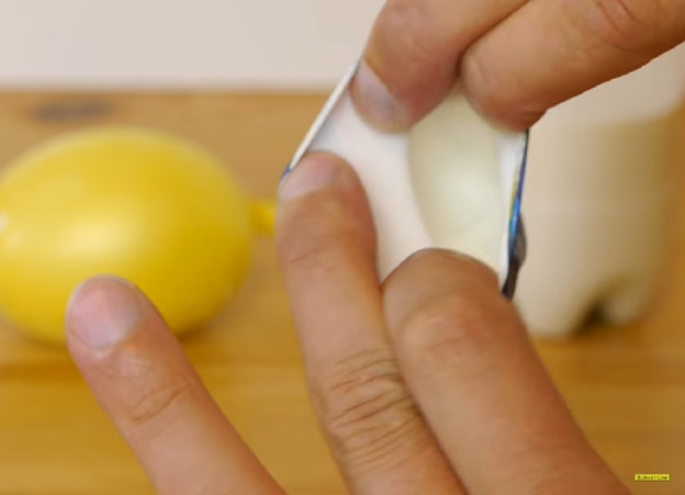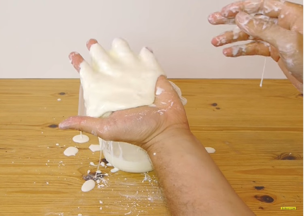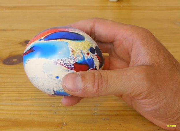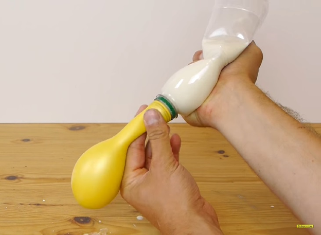 После того, как воздушный шар заполнен, слегка сожмите бутылку, чтобы побольше слизи залить в него, увеличивая размер вашего мяча антистресс.