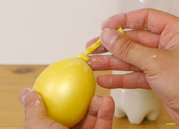4. Когда вы удовлетворены размером шара, снимите шар с бутылки и завяжите узел, обрежьте излишки материала.