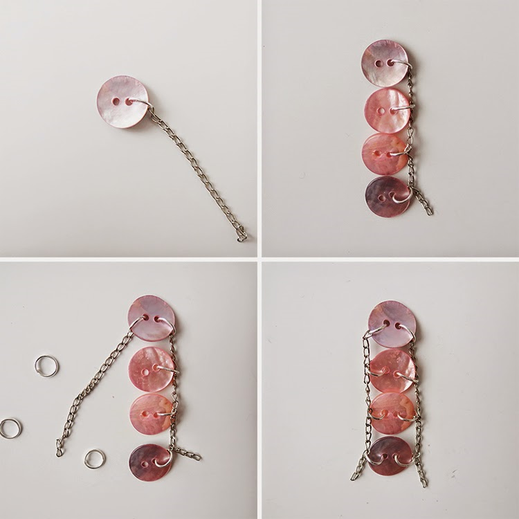 С помощью соединительных колец присоедините каждую пуговицу с цепью то с одной стороны, то с другой стороны.