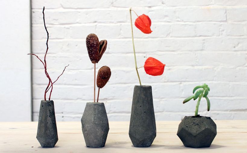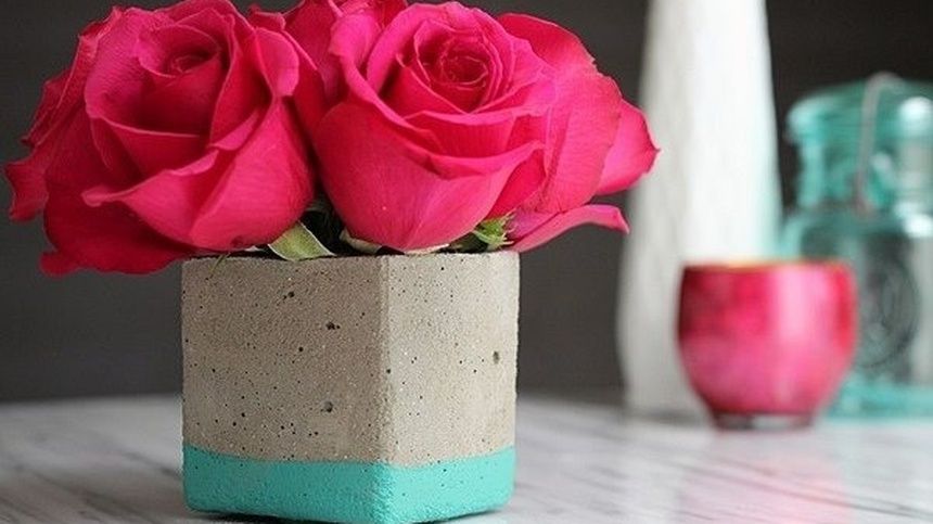 Это идеальный способ, чтобы поставить букет, так как бетон является прочным и очень хорошо удерживает воду. Хотя, он может треснуть... Для того, чтобы решить эту проблему, вы можете использовать пластиковый или стеклянный стакан внутри бетона во время создания вазы. Прекрасная идея!