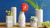 Лично мне нравится контраст мягких, органических лепестков и жесткого, практически нерушимого материала вазы. Бирюзовый цвет освежает нашу поделку, делая подходящей практически к любому интерьеру.