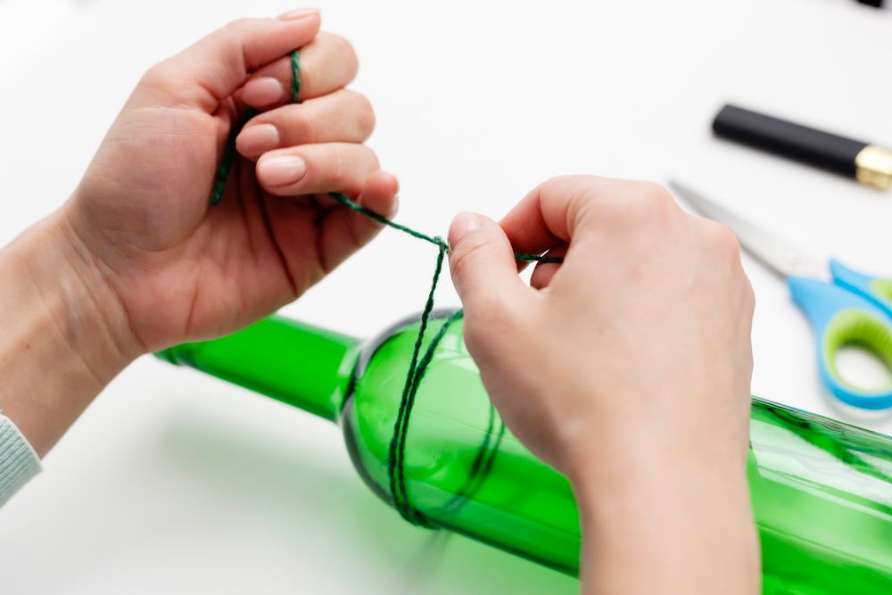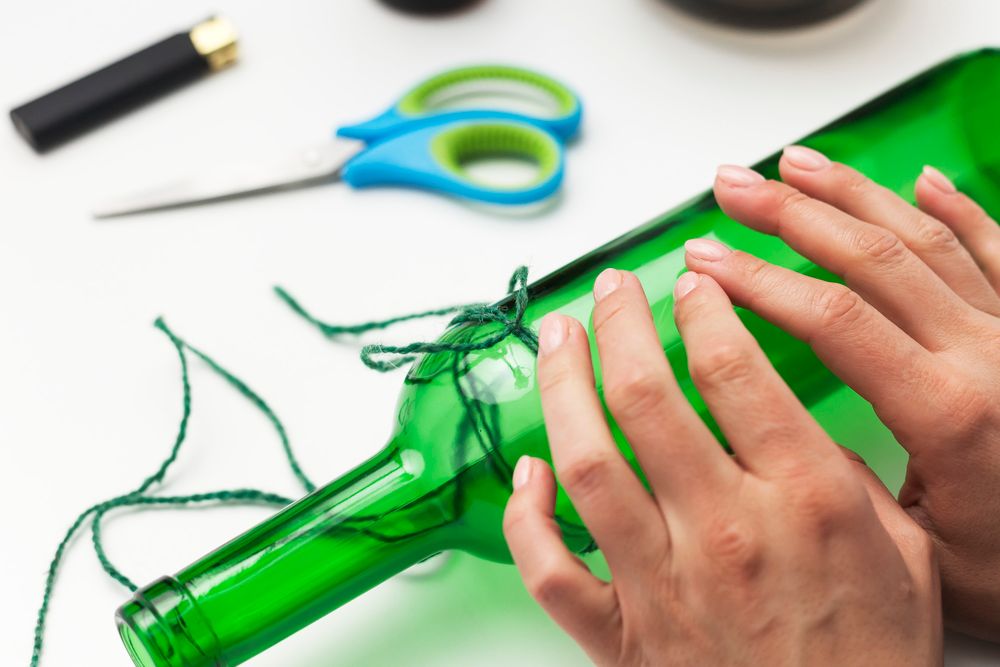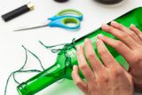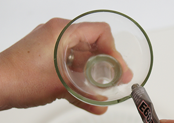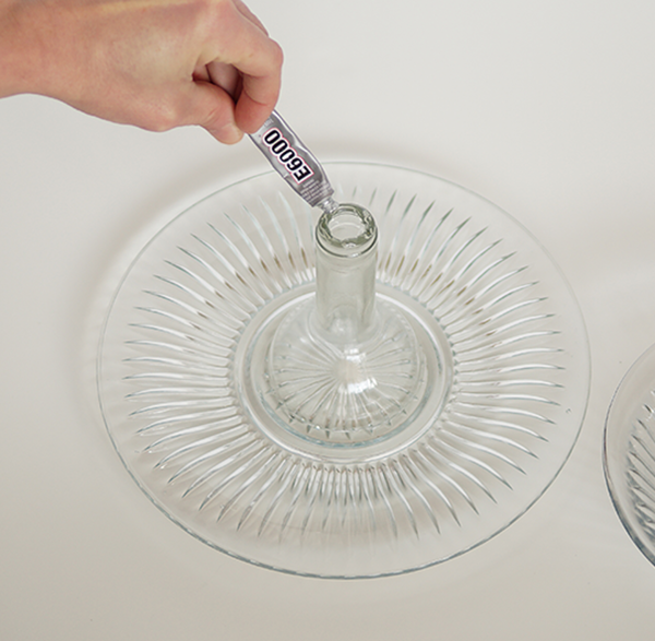2. Нанесите клей на верхнюю часть той же бутылки и приклейте блюдо среднего размера.