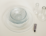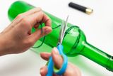 1. Поместите самое большое по величине блюдо на ровную поверхность и приклейте верхнюю часть бутылки к нему, как показано на рисунке.