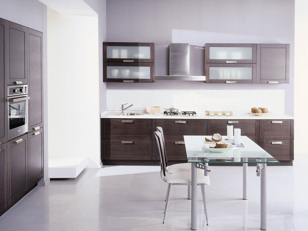 Мебель из массива дерева уместно смотрится в шикарных палаццо. Для обычной квартиры можно подобрать обстановку из МДФ. Антикоррозийные добавки в такой мебели выдержат и эксплуатацию на кухне, и в ванной.