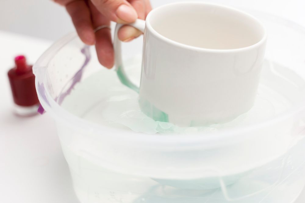 6. При необходимости очистите внутреннюю поверхность кружки жидкостью для снятия лака.