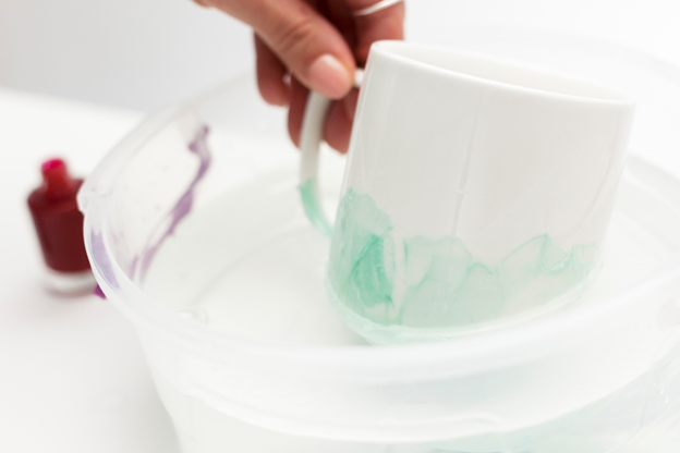 Если вам надоела простая белая кружка, вы можете изменить ее внешний вид, своими руками, используя при этом лак для ногтей и воду. Простая, быстрая и доступная техника нанесения рисунка своими руками, который при этом будет очень оригинальным и стильным.