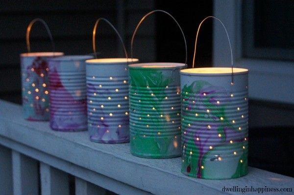 Вуаля! Повторите процесс со всеми банками. Смешивайте разные цвета для всех светильников. Помните, что делать необходимо это БЫСТРО, чтобы лак для ногтей не высох (возможно, придется сделать это несколько раз, чтобы понять, как правильно)!