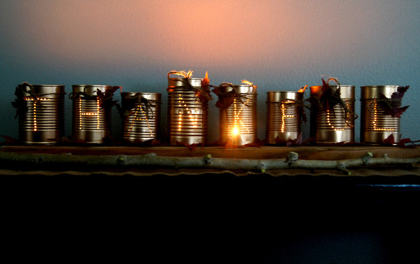 5. Добавьте чайную свечу в каждую банку.