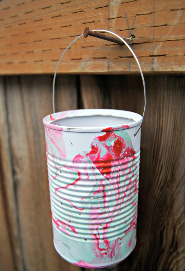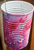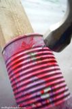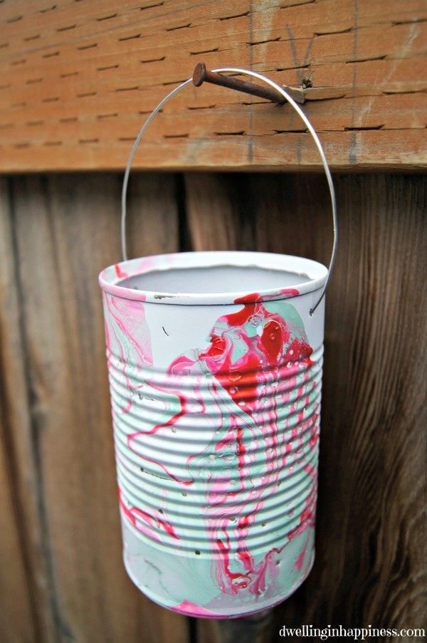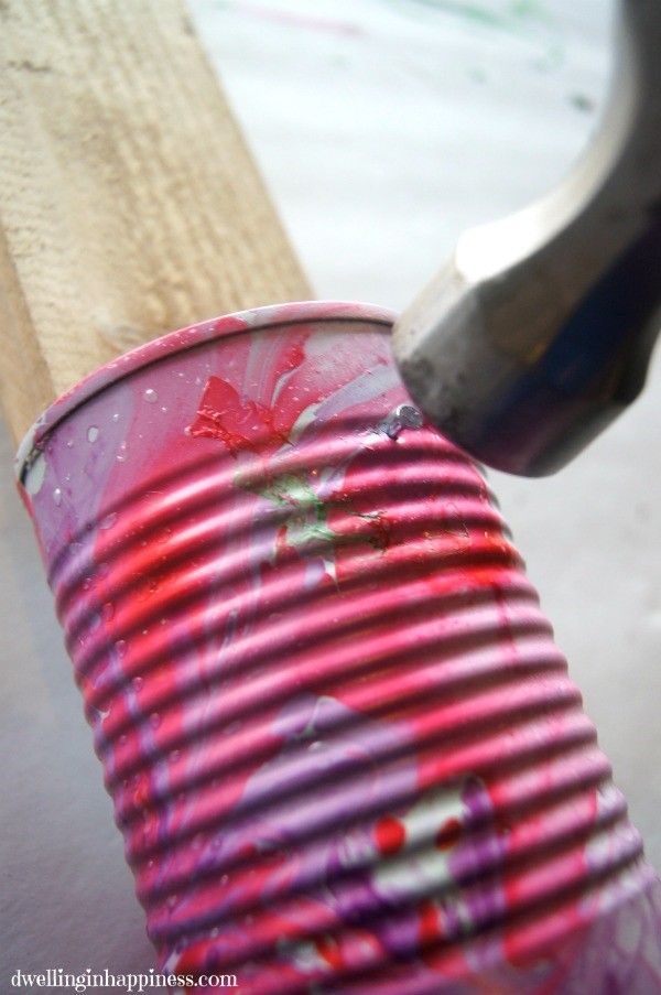 (4) Окуните жестяную банку в воду и медленно поверните банку, чтобы лак для ногтей покрыл банку.