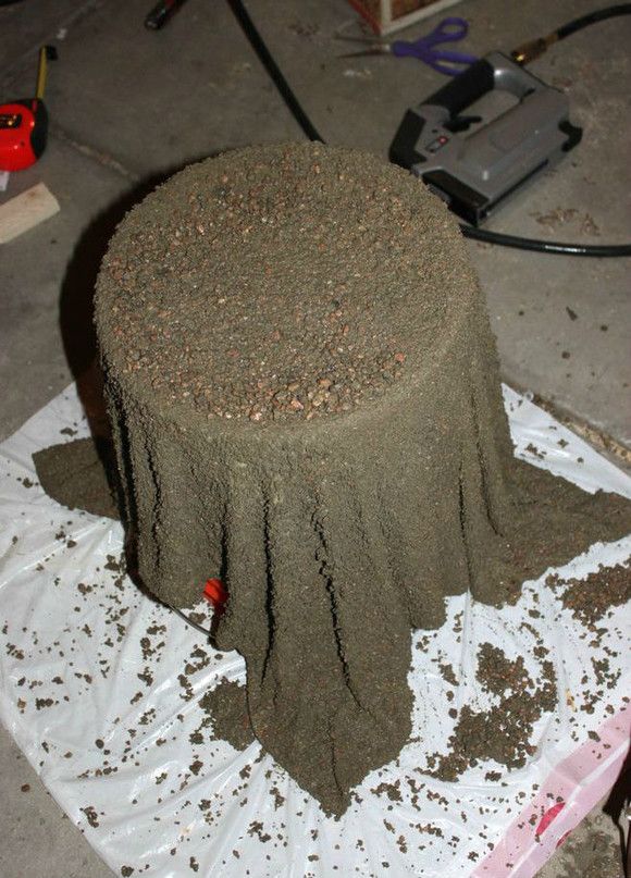 Каждый раз после ремонта люди выбрасывали засохшие в цементе тряпки, пока кому-то не пришло в голову пропитать полотенце цементом намеренно. Получилось и красиво, и необычно.
