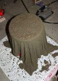 На опрокинутое ведро-форму положите полотенце и тщательно разгладьте дно будущей вазы от складок. Ниспадающие складки полотенца расправьте по своему вкусу. Оставьте сохнуть на сутки или двое. Выньте внутреннюю форму-ведро.
