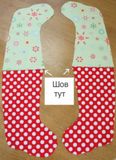 Возьмите ваш шаблон сапожка и наложите на двойной слой ткани, который вы выбрали для лицевого слоя, приколите шаблон булавками