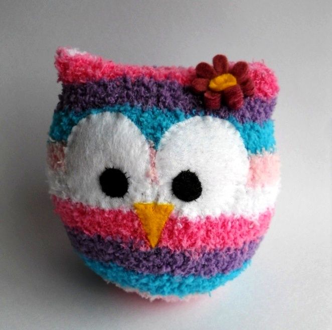 Когда все детали заняли свое место, сова готова. И не скажешь, что еще недавно это был ничем не примечательный носок!