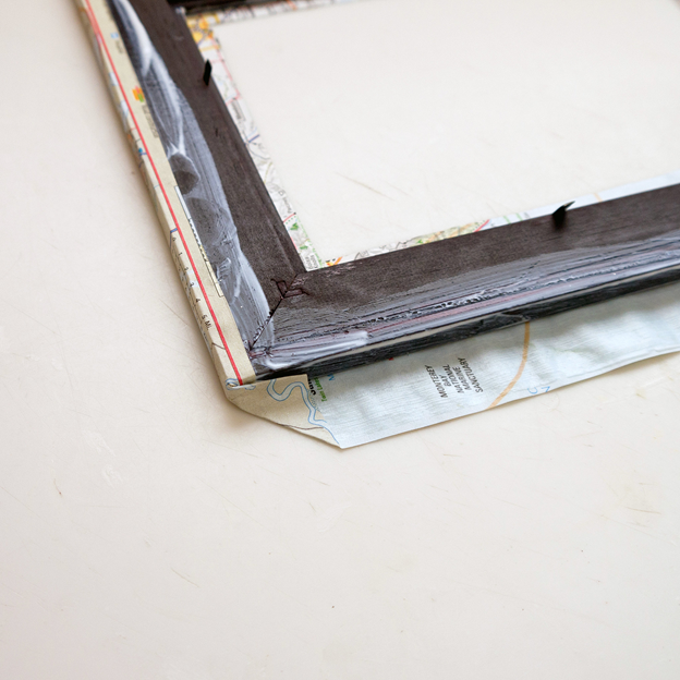 3. Затем аккуратно оберните рамку заготовкой, как с наружной, так и с внутренней стороны. Дайте высохнуть.