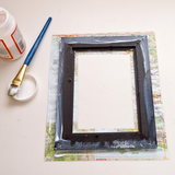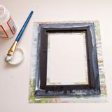 2.Теперь заготовку промажьте клеем ПВА с тыльной стороны, и нанесите клей на саму рамку, как на лицевую сторону, так и на края с тыльной стороны.