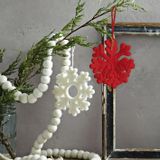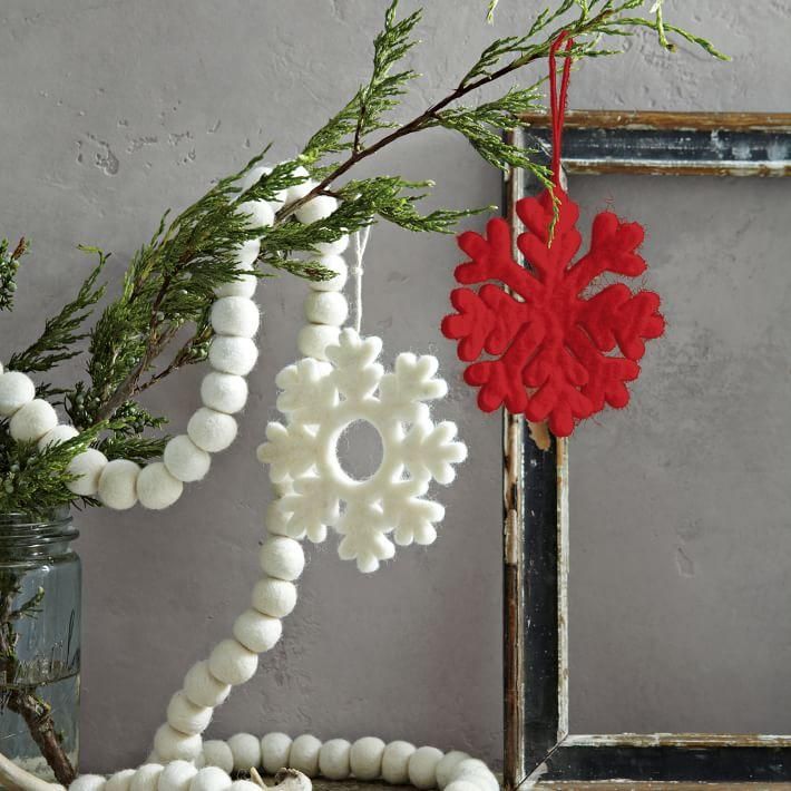На фоне густой зеленой хвои также здорово смотрится белый с красным.