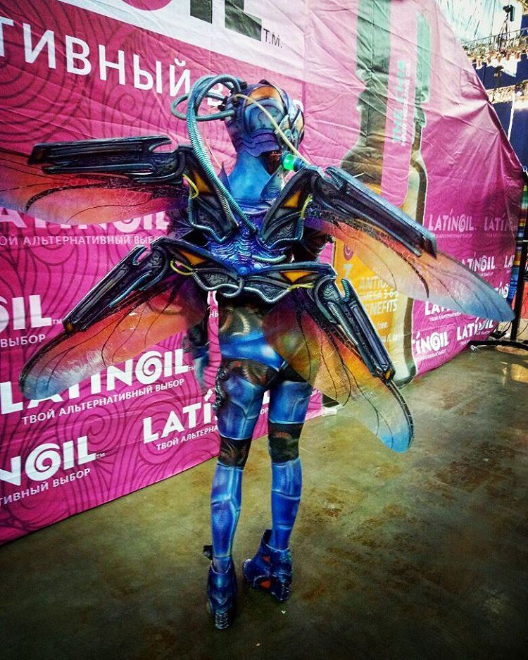 Модель мы нашли в Питере(а мы в Москве) ,примерку проводили за 2 дня до конкурса(как приехали),подгоняли что и как,доделывали все на месте,все ставили на свои места.С крыльями самое сложное было,но мы справились!
